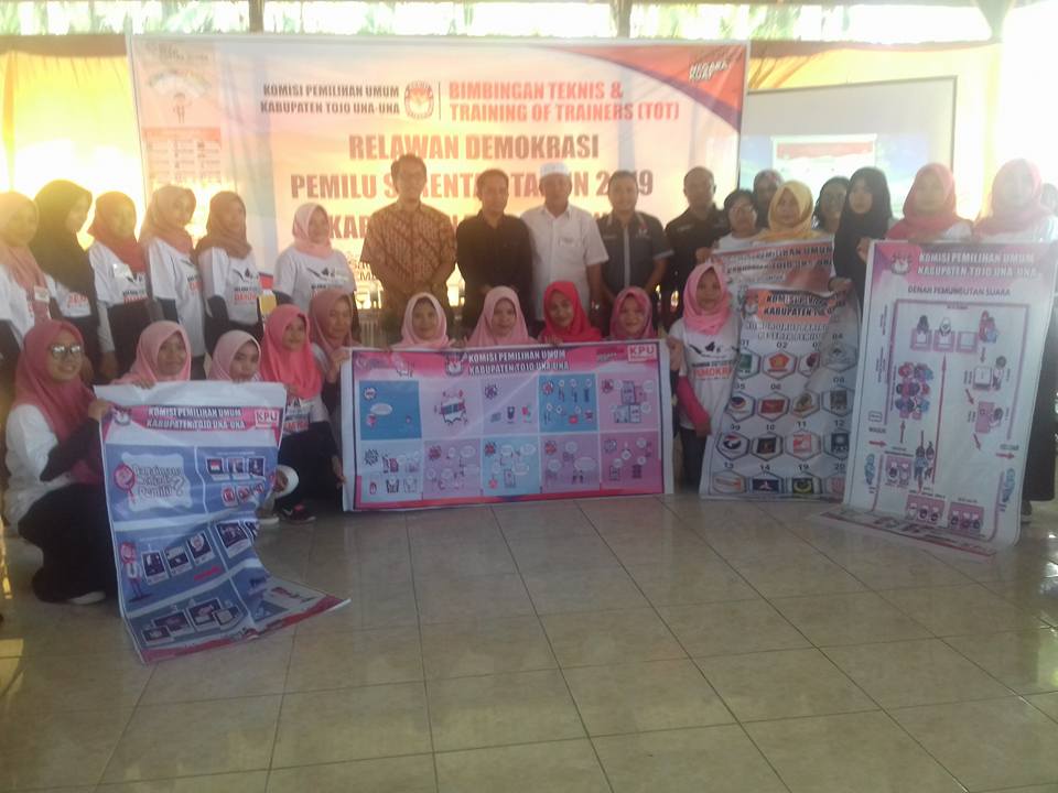 Touna Satusulteng.com – Sebanyak 55 Relawan Demokrasi (Relasi) terpilih, yang dinyatakan lolos seleksi oleh Komisi Pemilihan Umum (KPU) Kabupaten Tojo Una-Una (Touna) mengikuti pembekalan dan pelatihan kepemiluan pada kegiatan Bimbingan Teknis (Bimtek) dan “Training of Trainers (TOT) di Marina Cottage, Jumat (25/1/2019).