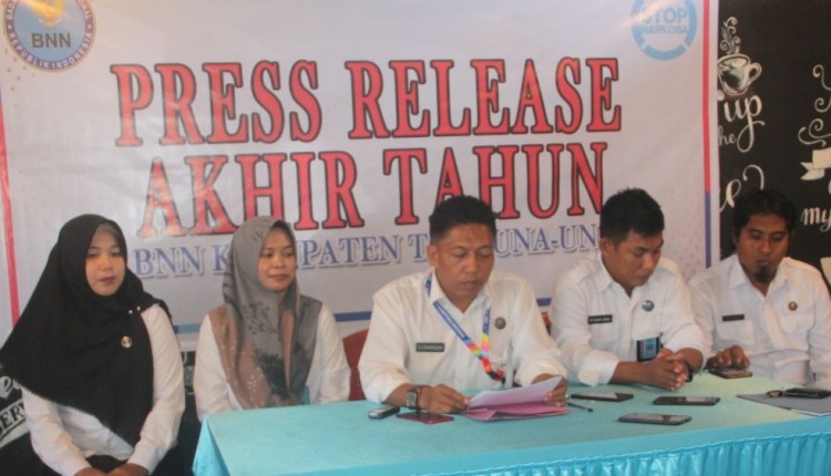 Touna, Satusulteng.com – Dalam rangka mempublikasikan ke masyarakat terkait capaian kinerja Program Pencegahan dan Pemberantasan Penyalahgunaan dan Peredaran Gelap Narkotika (P4GN) sepanjang tahun 2019, Badan Narkotika Nasional Kabupaten (BNNK) Tojo Una-Una (Touna) menggelar press release, Selasa (31/12/2019).