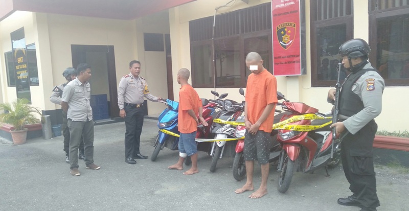 “Dari 5 unit kendaraan yang telah kami amankan dari hasil pengembangan 5 laporan itu antara lain 1 unit sepeda motor merk Yamaha Mio M3, 2 unit sepeda motor merk Yamaha Mio Soul GT, 1 unit sepeda motor Yamaha Mio Soul dan 1 unit sepeda motor Yamaha Mio J,” jelas Kapolres.