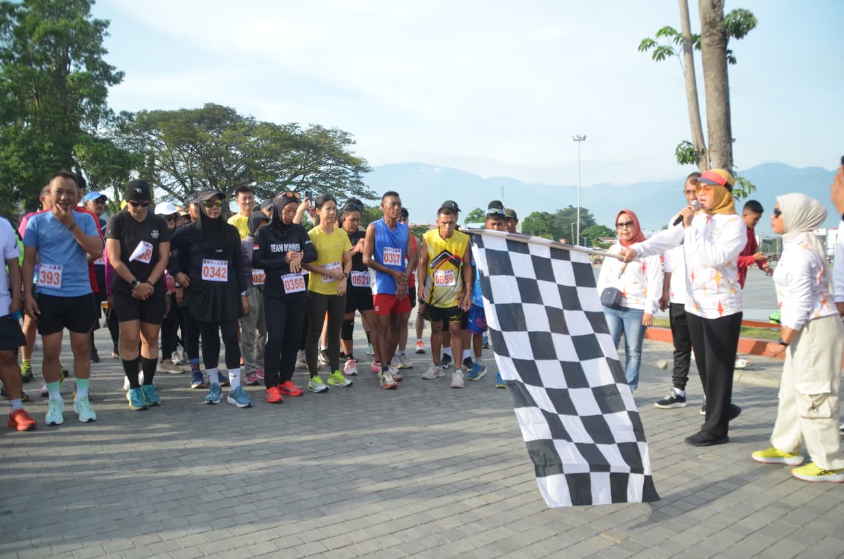 Palu, Satusulteng.com – Ketua Tim Penggerak PKK Kota Palu, Hj. Diah Puspita, S.A.P., M.A.P., yang juga merupakan Ketua Komite Olahraga Masyarakat Indonesia (KORMI) Kota Palu, secara simbolis melepas peserta Fun Run kategori Master (umur 45 tahun ke atas) dalam rangkaian kegiatan Kejuaraan Antar Kampung (TARKAM) 2025, pada Sabtu (08/11/2025), bertempat di halaman Kantor Wali Kota Palu.