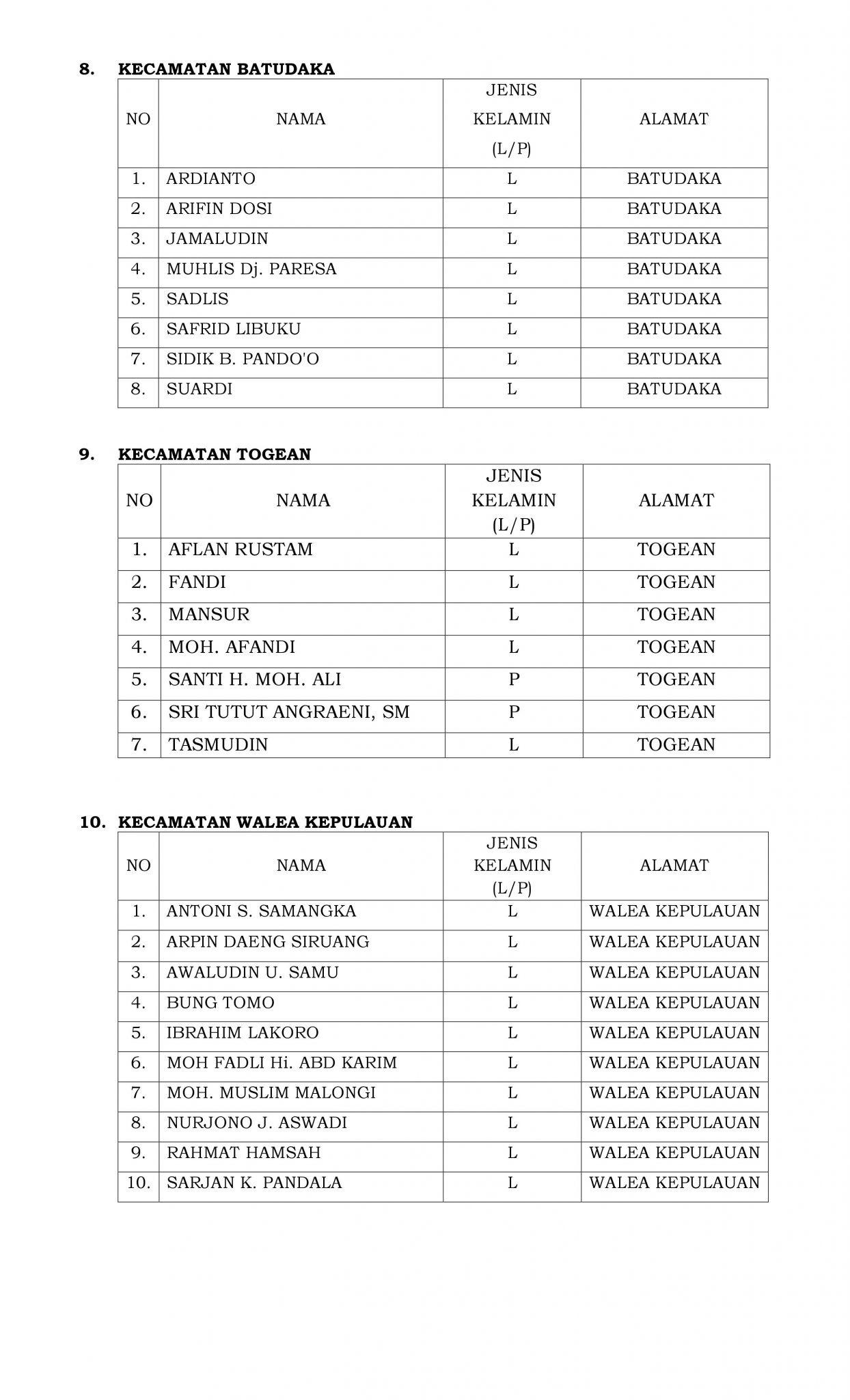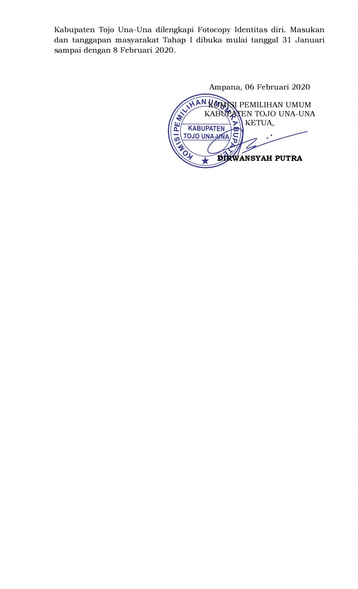 Touna, Satusulteng.com – Berdasarkan Berita Acara Rapat Pleno Nomor KPU Kabupaten Tojo Una-Una Nomor 04/PP.04,2-BA/7209/KPU-Kab/II/2020 tanggal 5 Februari 2020 tentang Rapat Pleno Hasil Tes Tertulis Calon Anggota Panitia Pemilihan Kecamatan (PPK) pada Pemilihan Gubernur dan Wakil Gubernur Sulawesi Tengah dan Bupati dan Wakil Bupati Tojo Una-Una tahun 2020. Nama nama peserta seleksi tes tertulis yang di nyatakan LULUS dan dapat mengikuti wawancara seleksi calon anggota PPK tanggal 9-11 Februari 2020 adalah sebagai berikut:
