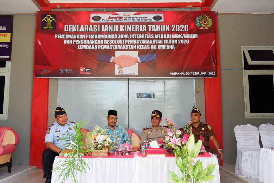 Dalam amanatnya, Kalapas Klas IIB Ampana Gunawan menyampaikan, bahwa Direktorat Jenderal Pemasyarakatan Kementerian Hukum dan HAM telah mencanangkan 681 satker Pemasyarakatan untuk bisa membangun Zona Integritas menuju WBK dan WBBM. Penandatangan deklarasi zona integritas ini menjadi salah satu bentuk keseriusan Lapas Klas IIB Ampana untuk mewujudkan Zona Integritas menuju WBK dan WBBM di tahun 2020.