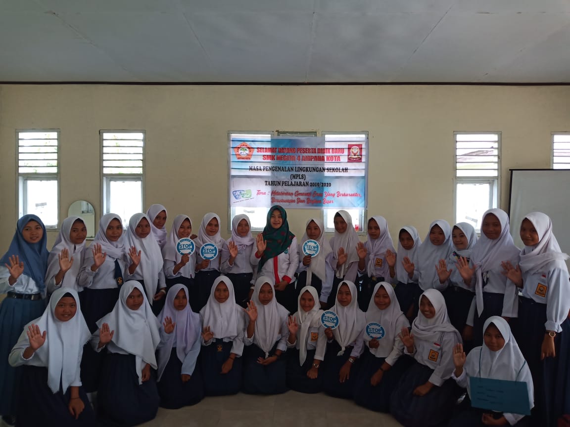 Penyebaran Diseminasi Informasi P4GN melalui sosialisasi pada kegiatan Pengenalan Lingkungan Sekolah (PLS) dengan tema Bahaya Penyalahgunaan Narkoba Bagi Pelajar diikuti oleh 70 peserta terdiri dari siswa-siswi baru SMK Negeri 4 Ampana Kota dan dewan guru.
