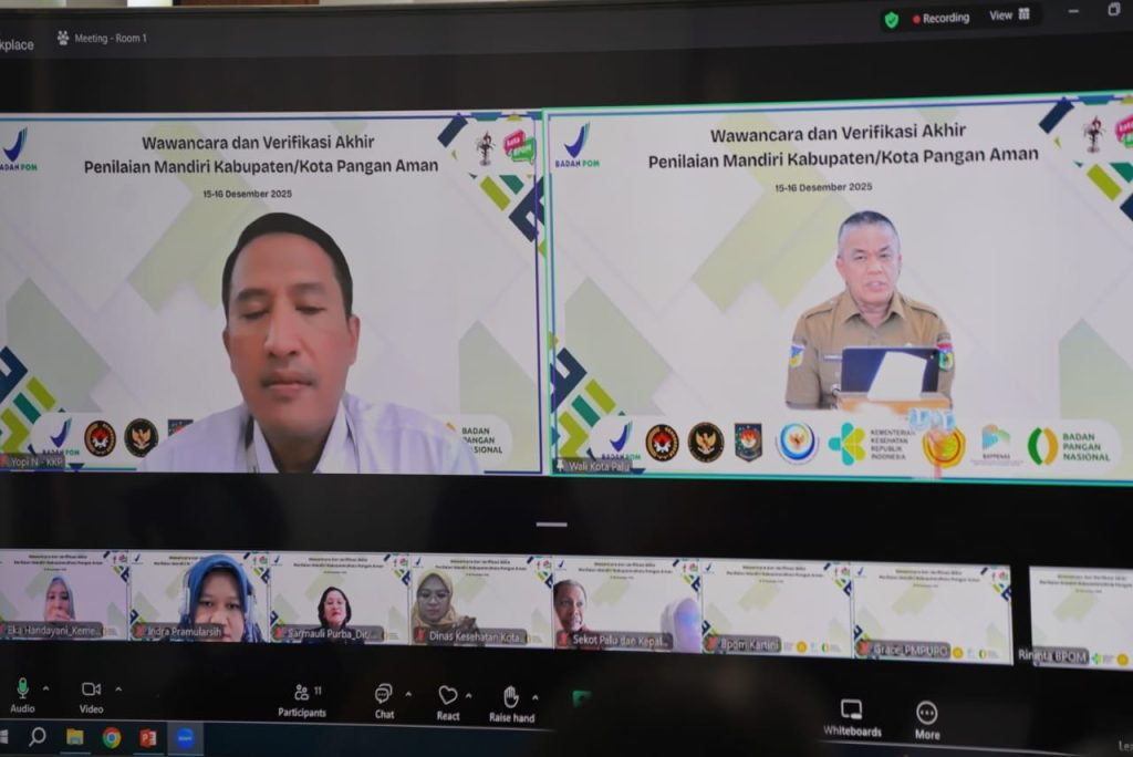 Palu, Satusulteng.com – Pemerintah Kota Palu mengikuti tahap wawancara dan verifikasi akhir penilaian mandiri Kabupaten/Kota Pangan Aman, pada Senin (15/12/2025).