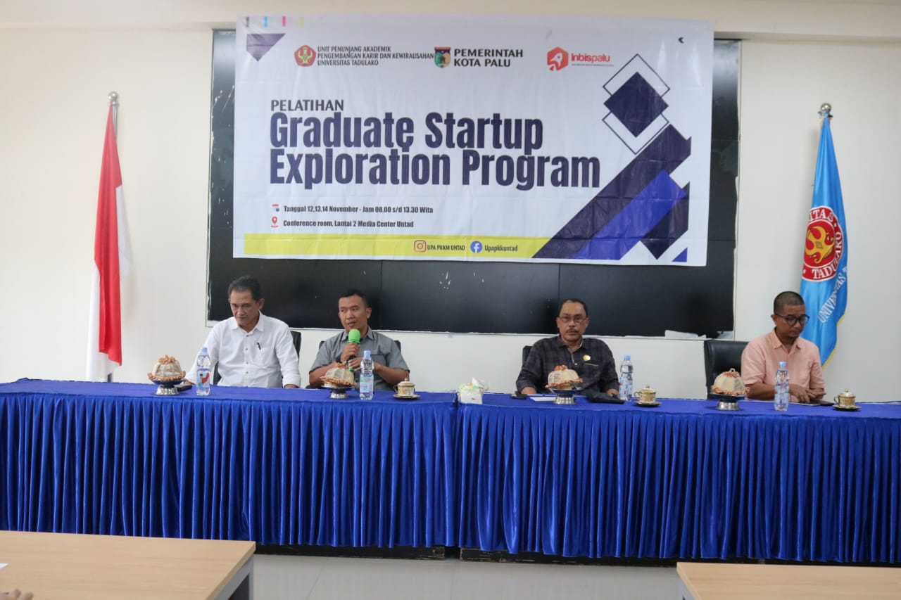 Palu, Satusulteng.com – Wali Kota Palu diwakili Plt. Asisten Bidang Perekonomian dan Pembangunan Setda Kota Palu, Rahmad Mustafa, S.STP., M.Si, menghadiri secara resmi pembukaan Pelatihan Graduate Start Up Exploration Program, pada Jumat (14/11/2025) di Aula Media Center Universitas Tadulako Palu.