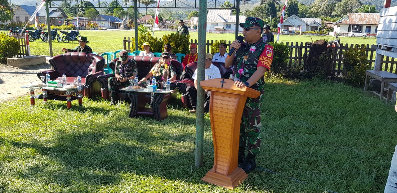 Tiba dilokasi TMMD di Desa Doda, Kecamatan Lore Tengah, Kabupaten Poso rombongan Tim Wasev bersama Dandim 1307/Poso yang juga sebagai Komandan Satgas disambut oleh warga Desa Doda dengan adat Pekasiwia yaitu pengalungan bunga.