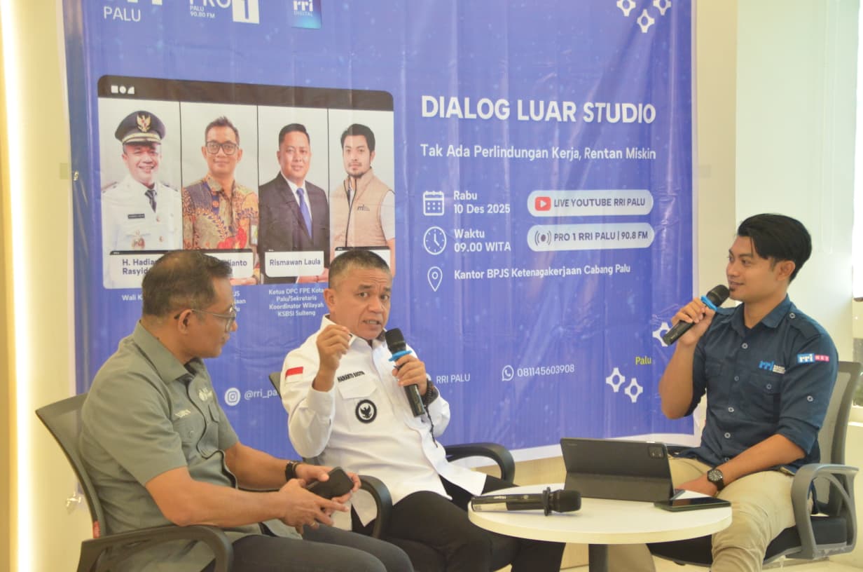 Palu, Satusulteng.com – Wali Kota Palu, H. Hadianto Rasyid, SE, menjadi salah satu narasumber dalam Dialog Luar Studio yang digelar oleh RRI Palu, Rabu (10/12/2025), bertempat di Kantor BPJS Ketenagakerjaan, Jalan Towua, Kota Palu.