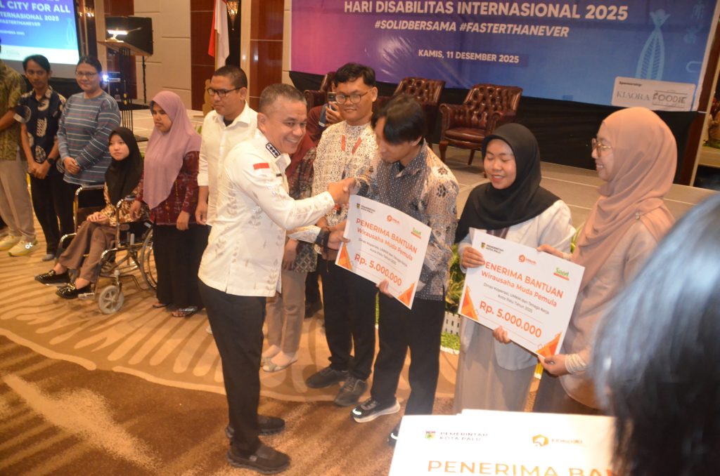 Pada kesempatan yang sama, Wali Kota Hadianto juga menyerahkan bantuan bagi Wirausaha Muda Pemula dari Dinas Koperasi, UMKM, dan Tenaga Kerja Kota Palu Tahun 2025 kepada sejumlah penerima.