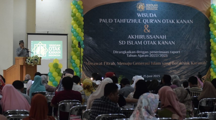 Kegiatan yang berlangsung di Gedung Asrama Haji Kota Palu ini diselenggarakan oleh Yayasan Otak Kanan Indonesia yang dirangkaikan dengan penerimaan raport tahun ajaran 2022/2023.