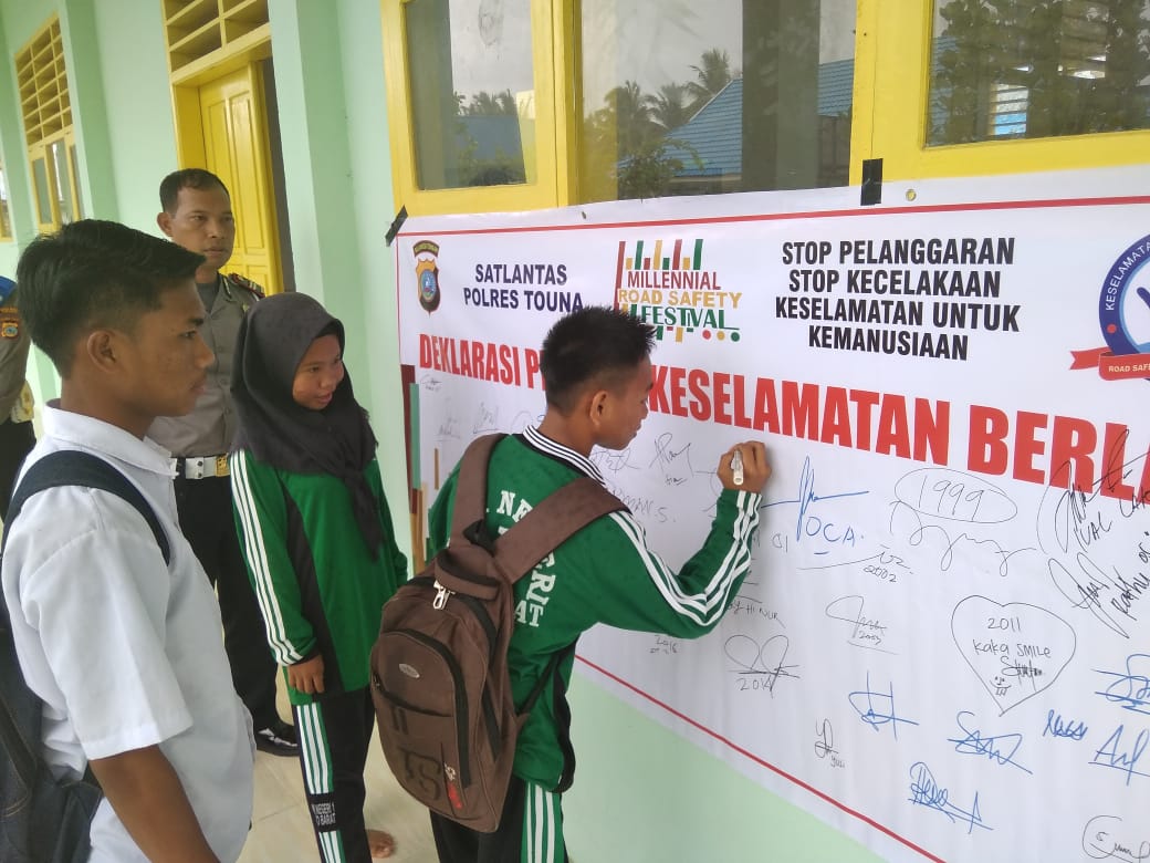 Wujudkan Milenial Cinta Lalin, Polres Touna Gencar Sosialisasi Program Nasional Milenial Road Safety Festival